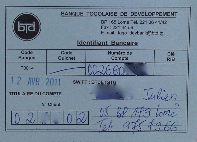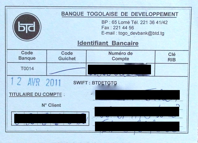 document type Relevé d'identité bancaire