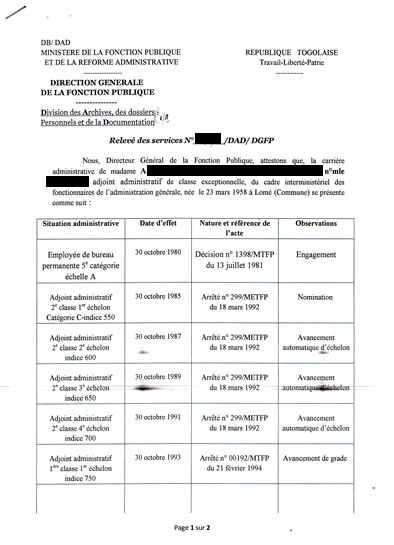 document type Relevé de services