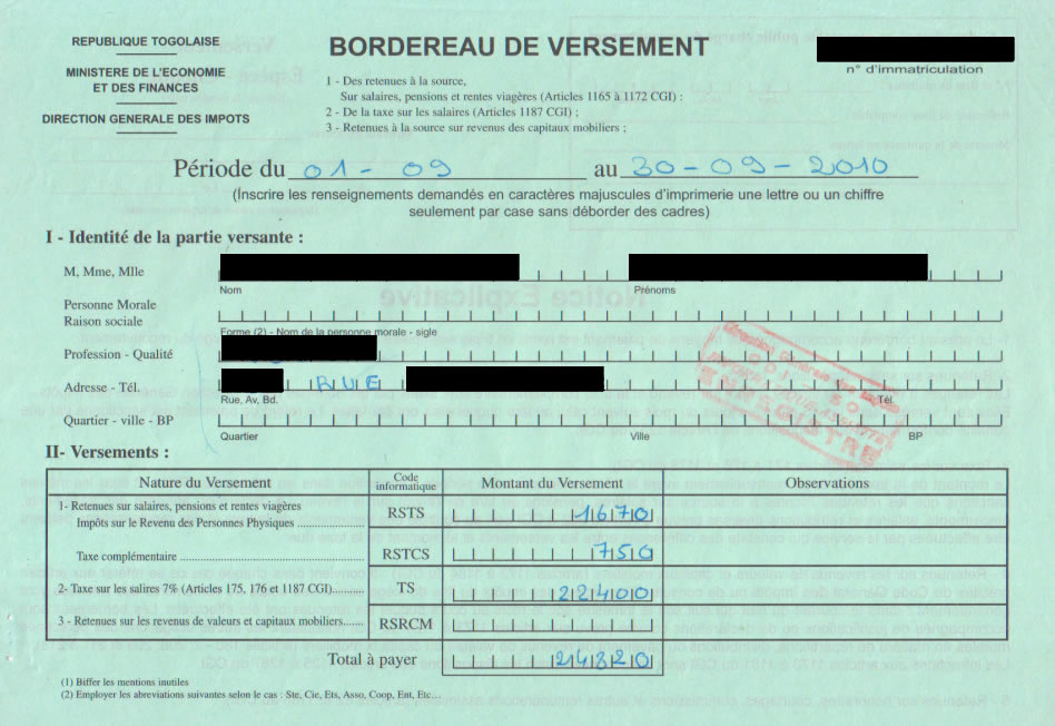 document type Retenue à la source sur les rémunérations versées