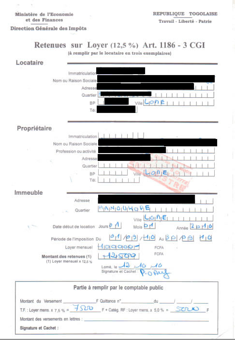 document type Retenue à la source sur les loyers