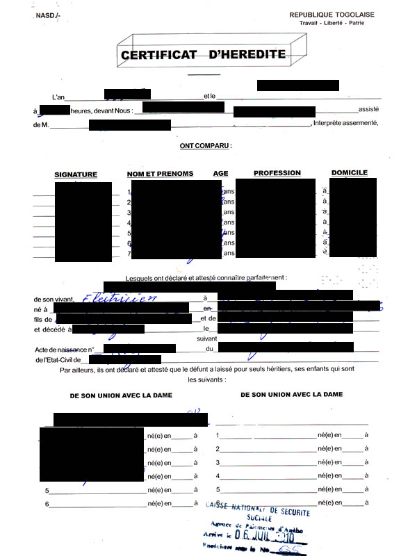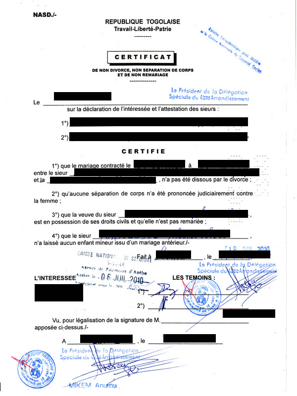 document type Certificat de non divorce, de non séparation de corps et de non remariage